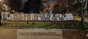 La Curva Sud si stringe attorno ai Fedayn. A Piazza Mancini, luogo dove sono stati sottratti striscioni e stendardi al gruppo di tifosi giallorossi, è apparso uno striscione, firmato “Gli amici della curva”, con scritto: “L’amicizia rende i successi più belli e le avversità più lievi. Sempre con voi!”
