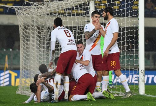 La risposta è nitida nella notte al Bentegodi: la Roma avanza con il fisico e la qualità. E, senza sbandare sotto la pioggia, rimane in piena corsa per la zona Champions con il 3° successo di fila dopo quelli contro il Brescia e il Basaksehir. Il 3-1 contro il Verona è il più sofferto, ma al tempo stesso il più significativo. Vittoria di personalità e di sostanza che permette ai giallorossi di tenersi stretto il 4° posto e di restare in scia della Lazio terza. Fonseca ha dunque ragione a insistere sui suoi fedelissimi e conferma per dieci-undicesimi la formazione schierata giovedì a Istanbul. L’unica novità è Under a destra per lo squalificato Zaniolo. Mossa, dunque, obbligata, sulla corsia dove Santon conserva la maglia da titolare. Il terreno del Benteigodi è bagnato dalla pioggia insistente e quindi scivoloso. Pellegrini, pur perdendo l’equilibrio, riesce a verticalizzare di sinistro (8° assist stagionale) per Kluivert che, lasciando sul posto Rrhamani, tocca di piatto tra le gambe di Silvestri per il vantaggio. La Roma, però, stacca improvvisamente la spina, come se si accontentasse e comincia a sbandare, soffrendo le iniziative di Lazovic e Zaccagni. Kluivert si addormenta in area e Faraoni, solo davanti a Pau Lopez, pareggia incrociando di testa. La Roma resiste, ma fatica a riprendersi l’iniziativa. E, davanti a Pau Lopez, la difesa si distrae anche nel gioco aereo: palo esterno di Rrhamani. L’unica giocata di Under al Bentegodi è preziosa: nuova verticalizzazione, segreto dell’efficacia giallorossa, con l’imbucata in area per Dzeko, atterrato da Gunter. Rigore trasformato dallo specialista Perotti (13° marcatore stagionale) prima dell’intervallo. Il Verona non riesce a spingere più con continuità. La Roma ne approfitta e comincia a gestire il match. Juric inserisce Veloso e subito dopo fa entrare pure Salcedo e Pazzini ma la situazione non cambia, anzi. Nel recupero infatti arriva il tris di Mkhitaryan su assist di Perotti. Lo riporta Il Messaggero.