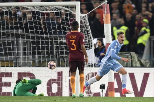 A SENSO UNICO – Nella ripresa Spalletti fa entrare subito Peres per Juan Jesus e passa al 3-4-3. Inzaghi, con Hoedt per de Vrij, non fa una piega e va avanti così. La Roma, scontata e lenta nel palleggio, si allunga e diventa vulnerabile. La Lazio ne approfitta e prende quota. Immobile vola verso Alisson. A farlo partire, due volte di fila, è Felipe Anderson. Al terzo tentativo, su lancio però di Milinkovic, chiude il derby dopo meno di un’ora. Veloce e preciso, esulta sotto la Nord. Spazio a Keita, fuori Felipe Anderson. L’assalto giallorosso è sciatto e disorganizzato. El Shaarawy ci riprova: palo e pari facile facile di Salah. Ecco Perotti per El Shaarawy e Murgia per Biglia, quest’ultimo diffidato e quindi da preservare per la finale. Totti, in campo 14 minuti, partecipa al successo più amaro contro la Lazio. Segna ancora Salah (100 gol dei giallorossi in 46 gare). La terza eliminazione stagionale ridimensiona la rosa e anche Spalletti: fuori contro il Porto, il Lione e la Lazio, avversarie in partenzameno quotate.