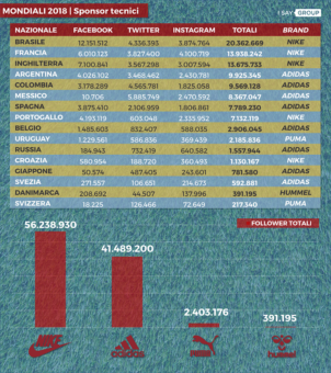 Infine, ci siamo concentrati anche sugli sponsor tecnici i protagonisti sono stati i colossi Adidas e Nike agli ottavi sono stati presenti rispettivamente con 5 e 8 squadre. Seguono Puma con 2 squadre e Hummel con 1. Analizzando i profili delle singole nazionali su Facebook, Twitter e Instagram, e raggruppandole per sponsor tecnico è Nike il brand vincitore, vantando il proprio marchio sulle casacche di entrambe le finaliste nonché sulle tre nazionali più seguite. Nazionale con più follower in assoluto è il Brasile, seguito dalla vincitrice Francia che ha superato l’Inghilterra al secondo posto proprio nel giorno della finale.