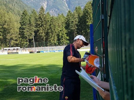 Ore 9:47 – Di Francesco a colloquio con Florenzi. Si è deciso un programma di allenamento per il centrocampista che lavorerà inizialmente da solo e poi col gruppo per tutta la settimana. In seguito il mister si dirige dai tifosi per firmare qualche autografo.
