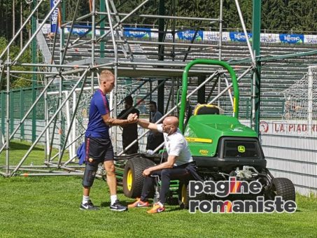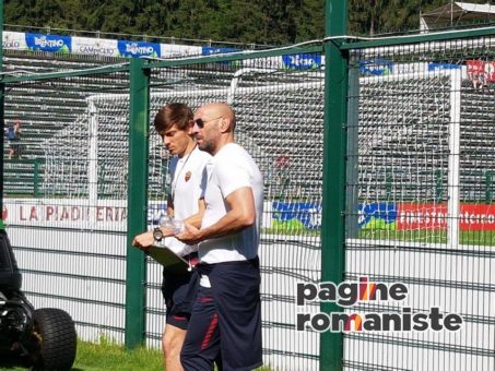 Ore 9:55 – A Pinzolo c’è anche il direttore sportivo giallorosso Monchi, che assiste alla seduta e parla con Gombar.