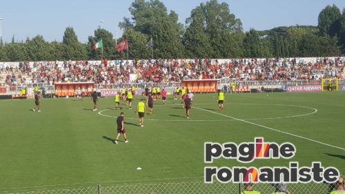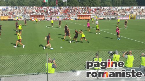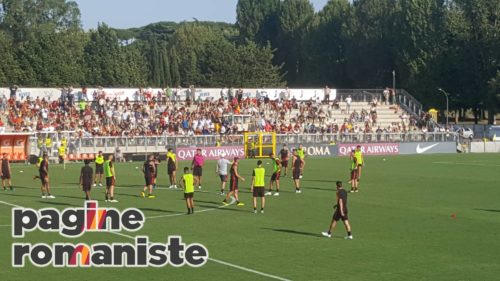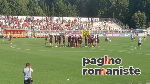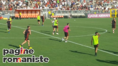 Pagine Romaniste (Dal Tre Fontane F.Biafora, L.Fantoni, E.Bandini) – Prosegue il quarto giorno di ritiro per la Roma. Dopo una sessione mattutina di scarico, svolta tra palestra e piscina, la squadra e lo staff si sono spostati al centro sportivo Tre Fontane dove hanno effettuato il primo allenamento della stagione davanti ai tifosi. Un vero e proprio bagno di folla per gli uomini guidati da Eusebio Di Francesco, ad aspettarli poco meno di mille tifosi sugli spalti. La seduta si è svolta con molti esercitazioni in movimento e con il pallone e non ne hanno preso parte Antonucci, Verde, El Shaarawy e Gerson. Normale gestione delle energie per loro.