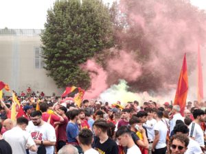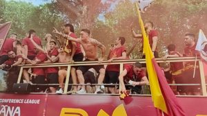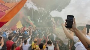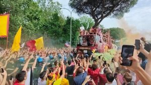 Pagine Romaniste (dal Circo Massimo Y.Oggiano) – Ieri la grande vittoria ed oggi una strepitosa festa. La Roma è tornata questa notte dall’Albania con la Coppa in bella vista che nel pomeriggio verrà mostrata ai tifosi al Circo Massimo. Il “corteo“, però, partirà alle 16.30 dalle Terme di Caracalla per poi proseguire verso il luogo sopracitato.