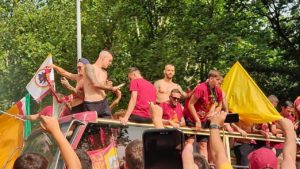Ecco il pullman con la squadra per festeggiare con i tifosi!