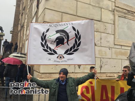 La Repubblica (M.Favale) – Più che la protesta di un gruppo di ultrà, sembra un convegno di urbanisti. Sotto una pioggia sottile, all’ombra di Palazzo Senatorio, si aprono mappe della città: «A Tor di Valle – indica col dito Daniele Lozzi, 35 anni, ingegnere e tifoso giallorosso – c’è un rischio idrogeologico r3 ma nel reticolo secondario. All’Olimpico c’è lo stesso rischio ma nel reticolo primario. E lo stesso di Ponte Milvio. Ci sono state mai evacuazioni della popolazione a Ponte Milvio? E allora, su, di cosa stiamo parlando?». Il capannello che si forma attorno a questo giovane, sostenitore giallorosso («Ho il ciondolo col lupetto appeso al collo, guarda», dice lui) ed esperto di classificazioni del pericolo esondazioni, annuisce. In piazza del Campidoglio, d’altronde, almeno oggi sono tutti d’ accordo: lo stadio della Roma non solo va fatto «perché vogliamo essere all’altezza delle altre società europee». Ma va fatto «per la città. Lo stadio è di Roma, non dei romanisti», prosegue l’ingegner Lozzi. E attorno la gente applaude. L’adunata degli ultrà rilanciata sui social e dalle radio (solo alcune, però, perché un altro pezzo è in rotta con la società) per mettere pressione sulla maggioranza 5 Stelle ed esplicitare il sostegno al progetto di Tor di Valle non raggiunge numeri importanti. Anzi. Alla fine saranno appena un centinaio i presenti cosa che non impedirà loro di essere identificati (e successivamente denunciati) dalla Digos per «manifestazione non autorizzata». Roberto Giachetti, consigliere Dem tifosissimo giallorosso, si autodenuncia: «C’ero anch’io. Rinuncio all’immunità parlamentare». Che sarebbero accorsi nel giorno dell’incontro decisivo tra Comune e As Roma, però, era noto. Così come c’era da aspettarsi che, con un tempo non certo clemente e con lo slittamento in serata del vertice, sarebbe stata una manifestazione a ranghi ridottissimi.