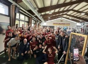 L’under 14 giallorossa ha vinto il derby contro la Lazio nella mattinata odierna, con il risultato di 2-1. Galieti e Zekaj i giovani giallorossi ad indirizzare il match, festeggiato oggi a Trigoria anche con la prima squadra, con José Mourinho in prima fila, sia nell’assistere il match, sia nei festeggiamenti. Mancini e Matic in versione ultras, hanno poi applaudito i ragazzi della Roma under 14.