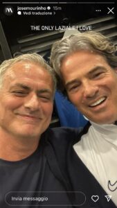 José Mourinho, ex tecnico della Roma, torna a far parlare di sé. Lo Special One ha infatti pubblicato una storia sul proprio account di Instagram che lo immortala insieme a Fernando Couto, ex giocatore della Lazio con il quale Mou condivide la nazionalità. Queste le parole utilizzate dall’ex allenatore giallorosso: