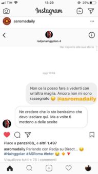 Radja Nainggolan, centrocampista della Roma ormai prossimo al trasferimento all’Inter, ha risposto su Instagram alla pagina asromadaily a proposito del suo futuro. Queste le sue parole: