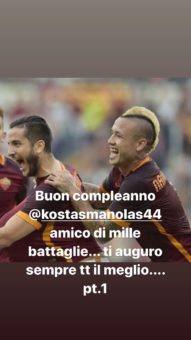 “Buon compleanno Manolas, amico di mille battaglie… ti auguro sempre tutto il meglio”.