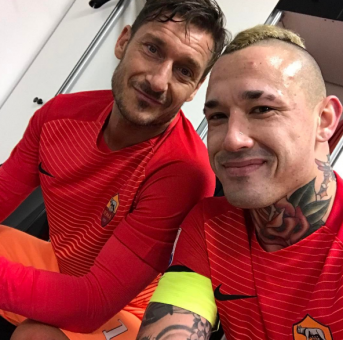 Con l’assenza di De Rossi e la panchina di Totti Radja Nainggolan era il Capitano della Roma contro l’Udinese. Il belga si scatta un selfie negli spogliatoi con il numero 10 giallorosso postandola su Instagram. Queste le sue parole: “Grande vittoria. Invertiti i ruoli per un attimo, grande capitano“.