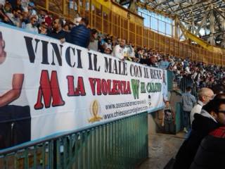 Striscione al San Paolo: “Vinci il male con il bene, abbasso la violenza, viva il calcio”