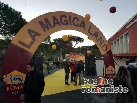 Pagine Romaniste (Dallo Stadio Olimpico Y.Oggiano) – In occasione della sfida di campionato contro la Spal, aprirà ‘La Magica Land‘, il nuovo Fan Village allo Stadio Olimpico dedicato a tutti i tifosi giallorossi prima delle partite casalinghe della squadra di Mister Eusebio Di Francesco. All’entrata si trova uno stand della Peroni per un assaggio della birra 3.5. Andando più avanti cominciano le attrazioni con una sala dedicata alla proiezione di video a 360 gradi. Successivamente troviamo prima una panchina dove si indossano gli occhiali per la realtà virtuale, mentre successivamente si trova un Roma Store dove vengono venduti gadget della Roma e maglie ufficiali. Utilizzando ancora gli occhiali della realtà virtuale si possono virtualmente parare dei calci di rigore. Presente anche un food corner, dove si può bere e mangiare, e per concludere il viaggio nel parco a tema, un palco dove esibirsi. Tutto questo ornato dalle sagome dei giocatori e da due campi da calcio balilla.