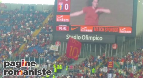 Pagine Romaniste (F.Biafora) – Sono cominciate le tante celebrazioni per Francesco Totti. In Curva Sud, durante il pre partita di Roma-Genoa, è apparsa una nuova bandiera in onore del Capitano giallorosso.