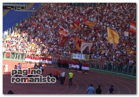 Prima delle sue parole, sulle note di Born to run di Bruce Springsteen, erano entrati uno ad uno i componenti dell’attuale rosa giallorossa. In primis i portieri Stekelenburg, Lobont e Svedkauskas. Poi era toccato ai difensori: ovazioni per Burdisso e, a sorpresa, per il giovanissimo Romagnoli. Tiepida l’accoglienza per Rosi. Tra i centrocampisti applausi per Pjanic, Florenzi e Marquinho, qualche fischio per Greco. Unico assente, giustificato, De Rossi, ancora in vacanza per qualche giorno dopo l’Europeo. In attacco grandi consensi per Bojan, Lamela, Lopez e Osvaldo, mugugni per Okaka e Borriello.