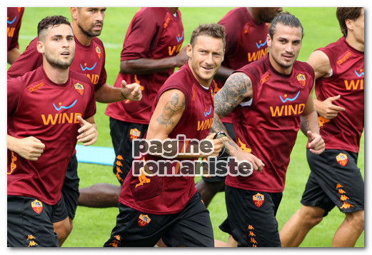 Prima amichevole della Roma di Zeman contro una selezione della Val Pusteria. Titolare Totti, che parte largo a sinistra con Osvaldo attaccante centrale e il giovane Nico Lopez a destra, mentre in difesa gioca il classe 95 Alessio Romagnoli insieme a Burdisso, che torna in campo dopo l’infortunio.