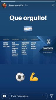 Diego Perotti è fresco di convocazione con la nazionale argentina per le sfide contro Italia e Spagna. L’attaccante esterno giallorosso ha voluto esternare la sua gioia con una storia sul suo profilo instagram. “Che orgoglio” queste le sue parole.