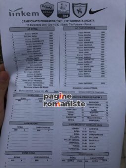 Sostituzioni: 53′ Isufaj per Di Masi (Chievo), 60′ Bouah per Nura (Roma), 70′ Petrungaro per Besuijen (Roma), 71′ Omayer per Vignato (Chievo), 82′ Pedroni per Danieli (Chievo), 83′ Pezzella per Cappa (Roma).
