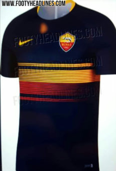 La Nike sta già pensando alla prossima stagione. Il sito footyheadlines.com ha pubblicato alcune anticipazioni sulla maglia pre-gara della Roma per la stagione 2018-19. La maglietta sarà nera con un disegno a strisce arancioni e rosse sul davanti e sarà distribuita a fine luglio.