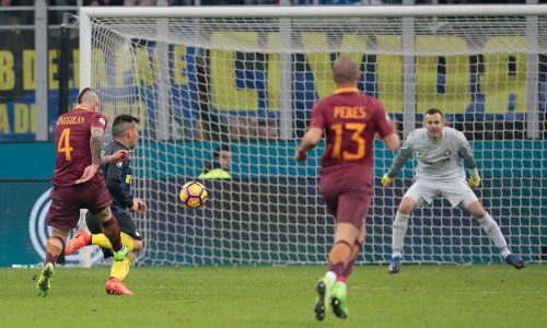 TE LO RICORDI IL CUCCHIAIO? – Intervallo, quindi, con la squadra di Luciano Spalletti avanti. Partita maschia, dicevano i cronisti di una volta. Intendevano senza esclusione di colpi e con il petto in fuori per difendere ed attaccare. Questione di gambe, di testa e di muscoli. E pure di tattica, con l’Inter carica di attaccanti e la Roma assai più equilibrata. Con difensori presunti tali, visto il loro compito in mezzo al campo. E Nainggolan, in realtà, che giocatore è? Un centrocampista che segna come un attaccante oppure un attaccante che sa fare anche il centrocampista? Una creatura tattica partorita dalla testa di Spalletti, anche se lui si professa figlio di Stefano Pioli che l’ha plasmato ai tempi del Piacenza. Bella riconoscenza, verrebbe da scrivere… Lo deve aver pensato anche il tecnico dell’Inter, quando il belga ha bucato un’altra volta Handanovic con un gol in stile Totti 2005, proprio a San Siro, sempre in quella porta. Palla rubata a metà campo, fuga solitaria per 60 metri (come si dice: coast to coast?) e raddoppio della Roma. Solo che al posto del cucchiaio del Capitano, Radja ha usato ancora il cannone del Gianicolo, sparando il pallone a 99,21 km all’ora. E a Cologno Monzese hanno sentito un altro botto.