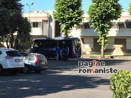 Ore 8.54 – Il pullman che porterà i giocatori a Villa Stuart fa il suo ingresso a Trigoria.