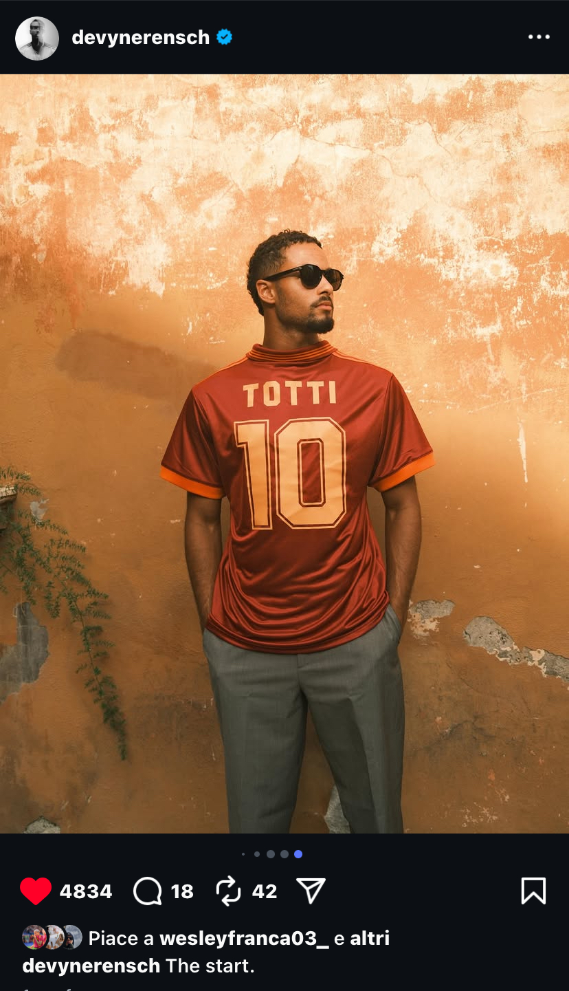In casa Roma non mancano i gesti che sanno toccare il cuore dei tifosi. Questa volta è stato Devyne Rensch a conquistare l’attenzione dei sostenitori giallorossi con un post social che richiama la storia e la leggenda del club. L’esterno olandese, rimasto in rosa nonostante le voci di mercato, ha voluto dedicare un pensiero speciale a chi ha scritto pagine indimenticabili con la maglia capitolina.