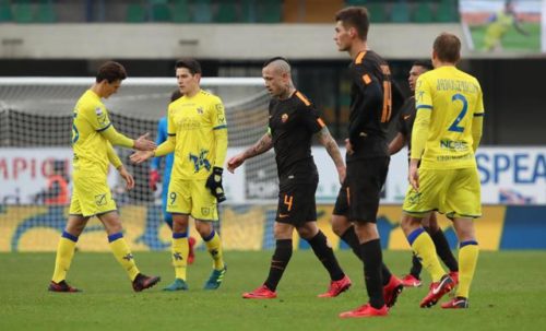 ESIBIZIONE A META’ – La prestazione della Roma è stata comunque sufficiente, con più di 2 mila tifosi a spingere come all’Olimpico e a ricordare Fiorini (Semo romani, ma romanisti di più: ciao Lando: striscione e coro, al 5’ minuto). Fare la partita, però, non è tutto. Il Chievo, con il solito 4-3-1-2, si è coperto, anche ricordandosi l’imbarcata di San Siro: 5 a 0, domenica scorsa. La differenza l’ha fatta Sorrentino, colpevole a Milano contro i nerazzurri e protagonista a Verona davanti ai giallorossi. Decisive le parate su Schick (primo e secondo tempo), Gerson (all’inizio) e Gonalons (nel finale). Maran ha replicato lo 0 a 0 del 5 novembre, sempre in casa, contro il Napoli. Di Francesco ha invece avuto il meglio dal suo gruppo solo nella ripresa. Decenti i primi minuti della partita, poi l’atteggiamento dei suoi giocatori non ha convinto fino all’intervallo. A parte Kolarov a sinistra, nessuno si è acceso con convinzione. Inesistenti Peres e Gerson a destra, discontinuo El Shaarawy e individualista Schick. Strootman e Nainggolan, per aiutare il centravanti, si sono spinti in avanti e hanno allungato il 4-3-3. A parte il gol che si è pappato Gerson, l’altro brivido è la traversa di Inglese dopo il difettoso controllo di Peres. Ha sofferto in quella fase anche Jesus, con i centrocampisti distanti dai difensori e quindi mai di riferimento. Non Fazio, regista più di Gonalons, nascosto nel suo guscio.