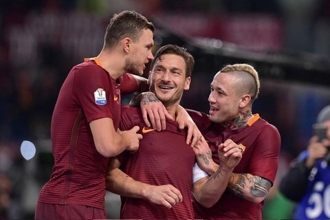 PUBBLICO SCONTENTO – Il Cesena è terzultimo in B e la gente di conseguenza boccia la prestazione dei giallorossi: fischi al rientro negli spogliatoi. L’Olimpico accoglie poco meno di 30 mila spettatori e la Sud è quasi al completo. La tifoseria c’è, il gioco no. Spalletti interviene durante l’intervallo e riparte nella ripresa inserendo Nainggolan per Juan Jesus. Ecco il 3° modulo della serata, il 4-3-2-1: Peres si abbassa a destra da terzino e Rudiger si accentra, piazzandosi alla sinistra di Manolas, Paredes è il play in mezzo a Strootman e Nainggolan. La Roma alza il ritmo e va all’assalto. Dzeko non sfrutta le prime 2 chance, ma fa centro al 3° tentativo, su appoggio d’esterno di El Shaarawy, lanciato da Nainggolan che ha svegliato i compagni nel secondo tempo. Il centravanti sale a 22 reti (meglio di Batistuta, 21, nel 2001). I giallorossi, però, restano in vantaggio appena 5 minuti. Su cross innocuo di Balzano, Alisson si perde il pallone e Garritano pareggia. A fine recupero, Agliardi atterra Strootman in area e Totti, all’ultimo respiro, trasforma il rigore (il 12° stagionale concesso alla Roma) per la qualificazione, festeggiando sotto la Sud il suo 18° gol in Coppa Italia e il centesimo con Spalletti in panchina.