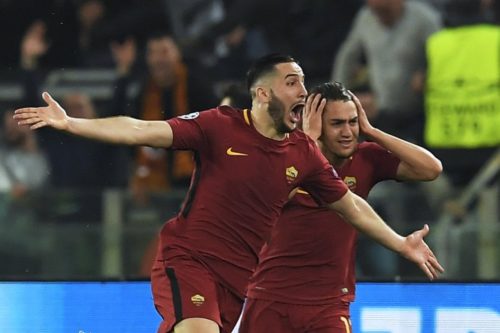 Maglia rossa come da tradizione con una particolare grafica elettrica lungo le spalle e le maniche. Colletto giallo come anche il font di nomi e numeri. Prima stagione per lo sponsor Qatar Airways. All’interno del colletto c’è la scritta “Roma siamo noi”. Pantaloncini rossi e calzettoni gialli. L’ultima volta che fu proposto questo abbinamento era la stagione 2016-2017.