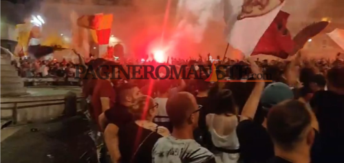 Pagine Romaniste – Festa doppia per la Roma. Prima l’esordio pubblico della squadra di Mourinho – vittoriosa per 0-1 con rete di Zalewski contro la Triestina – e poi le celebrazioni per l’anniversario della nascita del club. La Curva Sud si è data appuntamento alle 22:30 a Piazza del Popolo. Partito da qui il corteo ha raggiunto via Uffici del Vicario 35, indirizzo presso cui Italo Foschi – primo presidente della storia giallorossa – firmò il primo ordine del giorno del club capitolino. Attorno alle 23 è partito il corteo in direzione Via del Corso. I tifosi sono però stati respinti dalle forze dell’ordine, non propense a far transitare i sostenitori giallorossi. Il tutto è rientrato nel giro di qualche minuto, quando il corteo ha ottenuto l’autorizzazione. Il corteo si è poi diviso. Una parte è andata verso Via Uffici del Vicario 35, mentre i gruppi organizzati a Piazza San Silvestro.