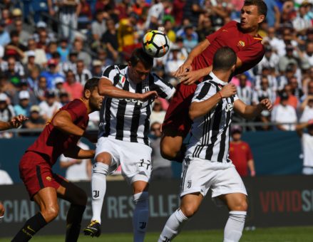 AVANTI JUVE – La Roma dimostra di aver assimilato in parte i rudimenti del calcio di Di Francesco: si vedono gli esterni che cercano di allargare il gioco (Perotti) e anche di accentrarsi (Defrel). La squadra per 25 minuti è cortissima e fa molta densità in mezzo al campo, per questo la Juventus all’inizio ha faticato a trovare le punte. Il gol del vantaggio nasce da un errore della difesa giallorossa: gran palla di Alex Sandro per Mandzukic, che scarta Alisson e segna di sinistro. L’attaccante croato è tenuto in gioco da Juan Jesus, ma è Fazio che lo perde, lasciandoselo sfilare alle spalle. Concorso di colpe della coppia centrale romanista. La Juventus gioca meglio, probabilmente anche perché conosce a memoria le trame del collaudato 4-2-3-1: a parte De Sciglio, in crescita rispetto alle precedenti due apparizioni, la Signora è la stessa che ha sollevato il sesto tricolore di fila, per di più con la difesa di riserva (Benatia–Rugani), nella Roma le novità del primo tempo sono Kolarov (uno dei migliori) e Defrel. Dal piede di Defrel nasce una delle due azioni pericolose dei giallorossi: all’8’ fa l’assist per Dzeko che tocca malamente e manda fuori. Poco dopo è ancora il centravanti bosniaco a toccare troppo piano su apertura di Perotti da sinistra (deviazione di Alex Sandro). Alla Roma però manca intensità, De Rossi e compagnia vanno in difficoltà sulle infilate della Juventus; Nainggolan e Strootman sono troppo pesanti per poter già essere in forma campionato e Peres è costantemente in difficoltà sulla destra, dove i bianconeri fanno male con Alex Sandro. Il brasiliano della Roma sembra a disagio da terzino nella difesa a quattro. Bene Marchisio nella doppia fase, Cuadrado pimpante ma un po’ impreciso nei cross.