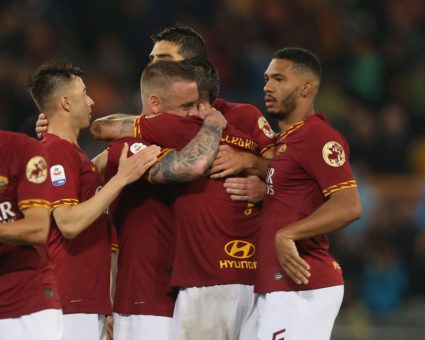 Mirante 6,5; Florenzi 6,5, Fazio 6,5, Juan Jesus 7, Kolarov 6,5; De Rossi 10, Pellegrini 7; El Shaarawy 6,5, Pastore 6, Perotti 7, Dzeko 5. Subentrati: Cristante 6, Under 7, Schick 5,5. Allenatore: Ranieri 7.