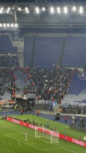 All’Olimpico è in corso una vera e propria battaglia agonista in campo, con la Roma e il Porto che non si stanno risparmiando colpi. Meno esaltante e da condannare invece quello che sta succedendo sugli spalti. Infatti verso il quarantesimo minuto del primo tempo, la fetta dei tifosi lusitani ha sfondato il cordone degli steward ed è arrivata vicino ai settori occupati dai tifosi giallorossi. Solo l’intervento della DIGOS ha raffreddato gli animi dei supporter ospiti.