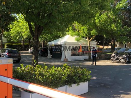 9.18 – Questo è il gazebo dove verranno effettuati i tamponi per i dirigenti e per tutti i dipendenti di Trigoria.