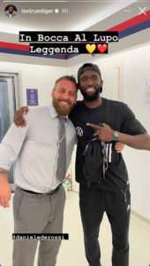 Una vecchia conoscenza giallorossa, tramite il proprio profilo Instagram, ha voluto fare il proprio augurio a Daniele De Rossi per la sua nuova avventura sulla panchina della Roma. Toni Rudiger ha commentato così la notizia del suo ex compagno, prima capitano e ora allenatore: “In bocca al lupo, leggenda”.