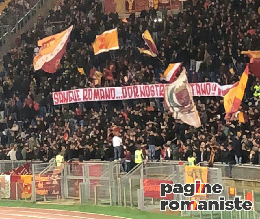 Roma-SPAL, dalla Curva Sud sostegno per De Rossi con cori e striscioni: “Sangue romano…DDR nostro capitano!” – FOTO