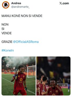 Non tutte le cessioni pesano allo stesso modo. E quella di Manu Koné rischia di lasciare una ferita profonda. L’addio del centrocampista francese, sempre più vicino all’Inter, ha acceso la rabbia dei tifosi giallorossi sui social. L’affare, valutato 45 milioni, sembra in dirittura d’arrivo.