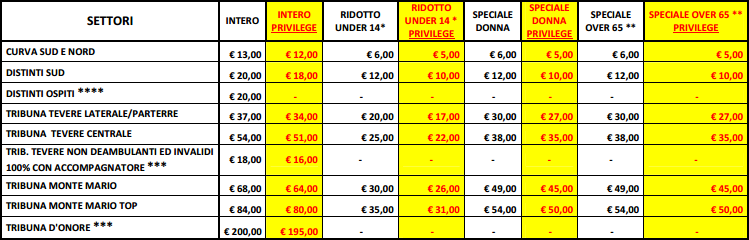 – Prevendita riservata ai Titolari di AS ROMA CLUB PRIVILEGE non abbonati su tutti i posti disponibili: dalle ore 12.00 di mercoledì 4 aprile 2012, presso tutti i punti vendita abilitati.