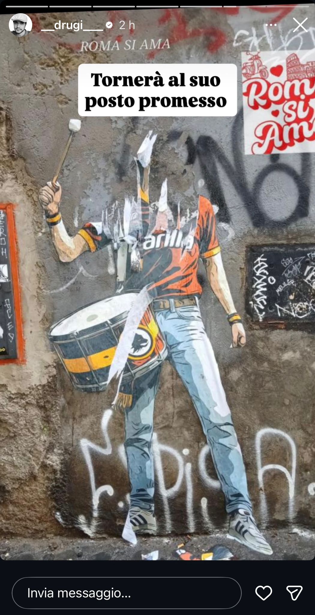 Ieri sera è stato imbrattato il murales dedicato ad Antonio De Falchi, realizzato dallo street artist Drugi a Roma. L’opera, comparsa da meno di 24 ore in via della Madonna dei Monti, è stata vandalizzata con il volto del giovane tifoso romanista strappato dalla parete, un gesto definito ignobile dalla comunità giallorossa. A denunciare l’accaduto è stato lo stesso Drugi tramite alcune storie Instagram, mostrando l’immagine del murales rovinato e condannando l’atto. L’artista ha inoltre promesso che l’opera verrà ripristinata e tornerà al suo posto, ribadendo il valore simbolico del tributo a De Falchi, figura storica della tifoseria romanista uccisa nel 1989.