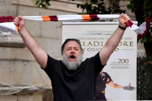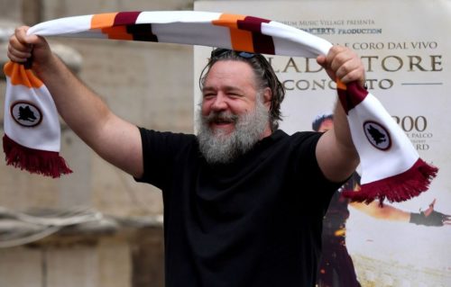 Russel Crowe è un grande tifoso della Roma e l’ha voluto dimostrare nella presentazione dell’evento benefico End Polio Now, prendendo una sciarpa giallorossa e urlando: “Forza Roma!”.