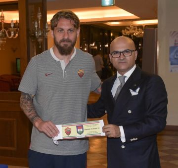 Grazie un’iniziativa promossa da Coni e Lions Club International, Daniele De Rossi questa sera indosserà una fascia speciale, dedicata al Tricolore. La fascia, legata al premio “Campione del Primo Tricolore“, ha la finalità di promuovere la bandiera italiana proprio nella città, Reggio Emilia, dove essa nacque. La fascia, consegnata dall’ingegner Salerno, riporta la scritta “Io rappresento la mia Squadra Io ne sono il Capitano“, proprio per simboleggiare l’importanza e la responsabilità che indossare una fascia di capitano comporta. Inoltre, nella stessa occasione, è stato premiato anche il mister Eusebio Di Francesco con il gagliardetto del “Primo Tricolore“, mentre alcuni palloni della Roma, firmati da tutti i giocatori della squadra, verranno messi all’asta per la campagna di beneficenza del Lions Club “One Shot, One Life“.