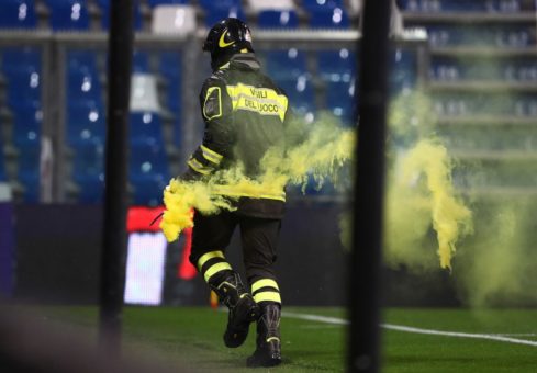 21.05 – Dal settore ospiti vengono tirati in campo due fumogeni a pochi passi dal portiere del Sassuolo. Il coro che ha accompagnato il lancio dei fumogeni: “Paga la multa, Pallotta paga la multa”.