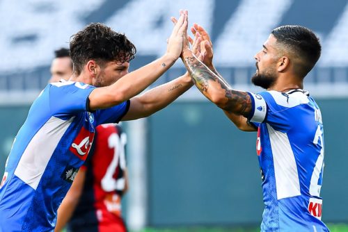 Prosegue la trentunesima giornata di Serie A, con i due anticipi delle 19:30 che si sono appena conclusi. Al Marassi il Napoli di Rino Gattuso allunga la sua striscia positiva, vincendo per 2 a 1 contro il Genoa. Decisivi i gol di Mertens, nel recupero del primo tempo, e Lozano al 66′. In mezzo il momentaneo pareggio di Goldaniga al minuto 49. Gli azzurri si portano così al quinto posto, a +3 sulla Roma, aspettando la sfida tra i giallorossi ed il Parma di questa sera. Nell’altro anticipo di giornata, invece, Fiorentina e Cagliari si fermano sullo 0 a 0.