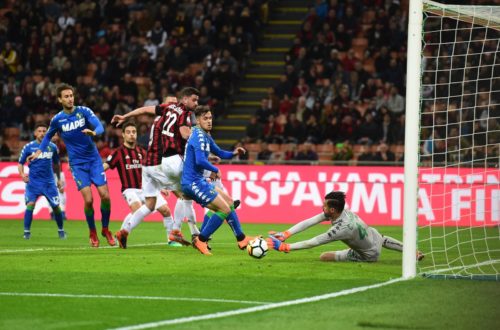 Finisce in pareggio l’ultima partita del 31° turno di Serie A tra Milan e Sassuolo. Nell’1-1 finale vanno in rete Politano per gli ospiti, con un grandissimo destro da oltre 20 metri, e Kalinic che mette alle spalle di Consigli, decisivo nell’ultimo minuto di recupero con una prodezza, con una bella girata di sinistro. I rossoneri rimangono lontani dalla zona Champions distante 8 punti.