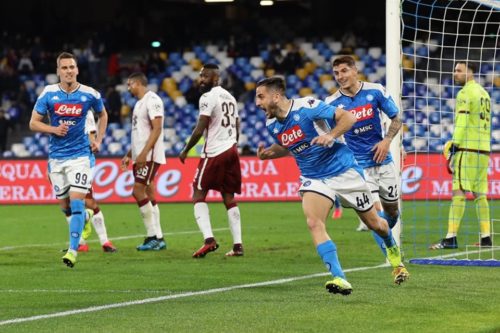 Alla 26° giornata di Serie A, il Napoli si impone per 2-1 in casa contro il Torino. Gli uomini di Gattuso hanno dominato la partita e hanno chiuso la squadra di Mazzari nella metà campo granata. A segnare il primo gol della partita, al 19′, è l’ex Roma Manolas, con un colpo di testa. Il Napoli chiude apparentemente la partita, all’82’, con una rete siglata da Di Lorenzo. Edera poi ha trovato il gol del 2-1 al 90′, grazie a un colpo di testa che ha battuto Ospina. I partenopei, con questa vittoria, si portano momentaneamente al sesto posto, a -3 dai giallorossi.