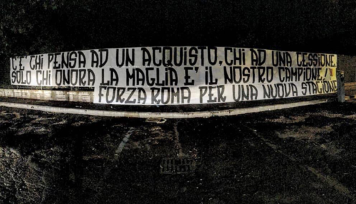 A Campo Testaccio, durante la notte, è apparso uno striscione scritto dai tifosi della Roma per motivare la squadra in vista della prossima stagione. Questo il testo: