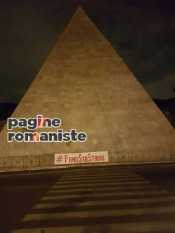 Continua la campagna del Comitato per il Sì per lo stadio della Roma. Questa sera è stato affisso uno striscione alla Piramide Cestia a sostegno proprio del progetto di Tor di Valle con l’hashtag ormai tanto di moda #FamoStoStadio. Queste la lettera del Comitato per il Sì riportata dall’Agenparl:
