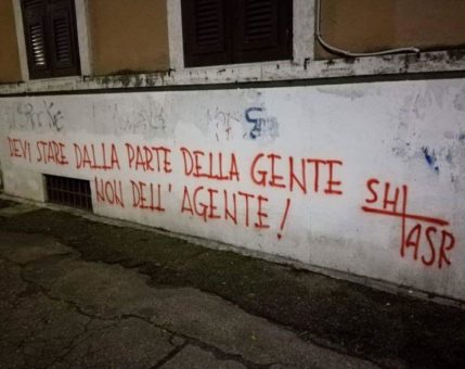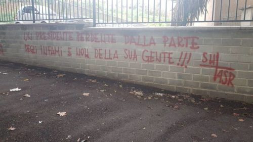 In giro per la città sono apparse alcune scritte contro il presidente Pallotta: “Devi stare dalla parte della gente non dell’agente!” “Un presidente perdente dalla parte degli infami e non della sua gente” “Pallotta boia“.