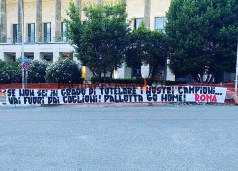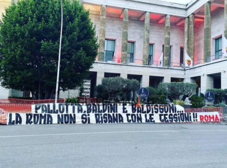“Pallotta, Baldini e Baldissoni… La Roma non si risana con le cessioni!!” e “Se non sei in grado di tutelare i nostri campioni… Vai fuori dai cog****i! Pallotta go home!”.