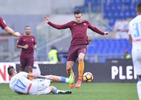 INDISTRUTTIBILE – No, Strootman non può proprio festeggiare il terzo gol del suo campionato, l’ottavo in Serie A (curiosamente ha segnato a otto squadre diverse), perché dopo la domenica meravigliosa di San Siro, in cui aveva stritolato il centrocampo dell’Inter, è andato in grave difficoltà contro i palleggiatori del Napoli. Il peso delle tante partite forse si sente, a maggior ragione sulle spalle di un calciatore che veniva da due anni e mezzo di inattività, cominciati per l’infortunio al ginocchio capitato proprio contro il Napoli.